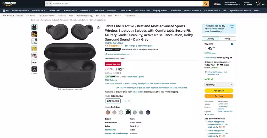 Es handelt sich um das Modell Jabra Elite 8 Active für $209.99. Die Kopfhörer sind in verschiedenen Farben erhältlich.