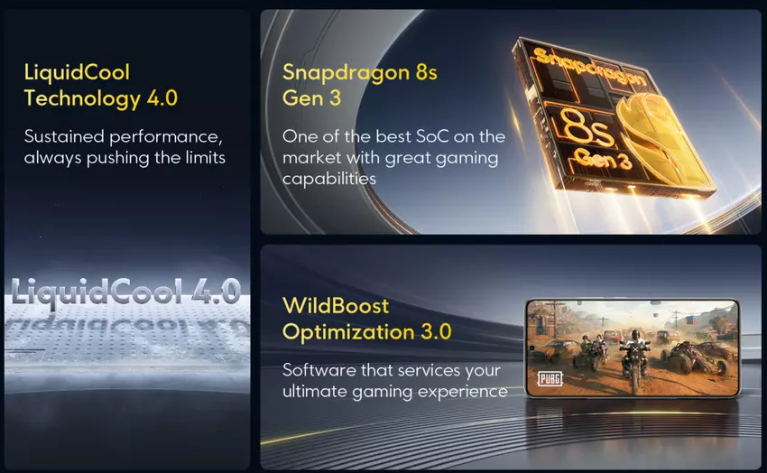 Angetrieben wird das Gerät von einem Snapdragon 8s Gen 3 Prozessor, gepaart mit LPDDR5x RAM und UFS 4.0 Speicher. Das Gerät wird von einem 5.000-mAh-Akku angetrieben. Das Smartphone unterstützt 90W Schnellladung. Die Neuheit verfügt über IP64-Wasserschutz, Bluetooth 5.4, Wi-Fi 6, NFC, einen Scanner unter dem Bildschirm, IR-Sensor für die technische Steuerung und Stereo-Lautsprecher.