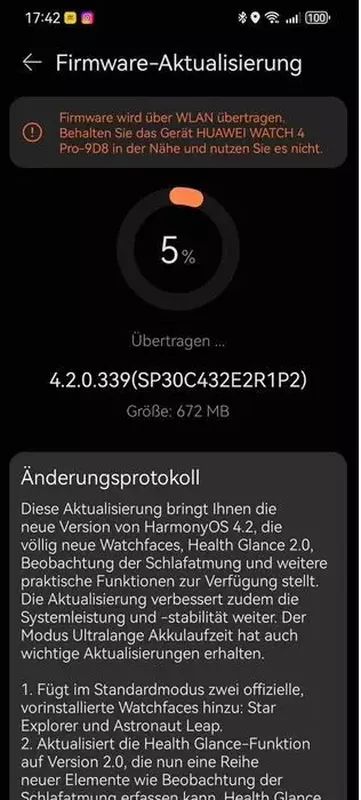 Es handelt sich um eine stabile Version der HarmonyOS 4.2-Firmware mit der Build-Nummer 4.2.0.339. Das System wiegt 672 MB und wurde bereits in Wellen an Geräte in Europa verteilt.