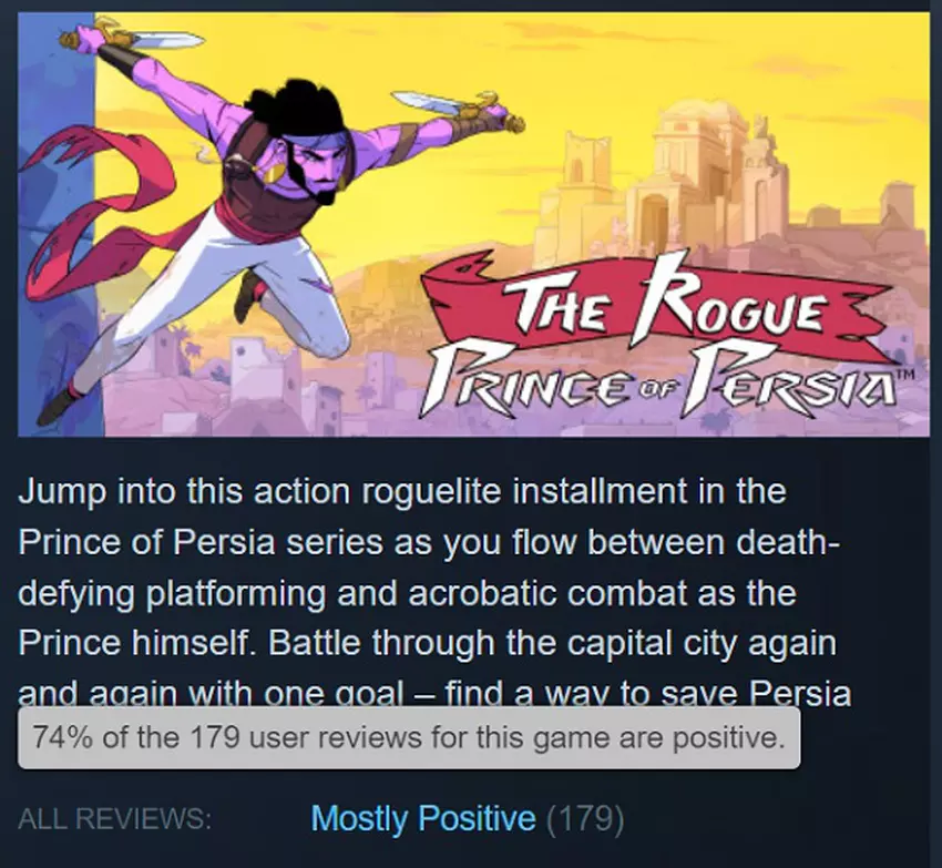 Nicht schlecht, aber auch nicht gut: Die Spieler haben kein Interesse an The Rogue Prince of Persia gezeigt, obwohl das Spiel gute Bewertungen erhält