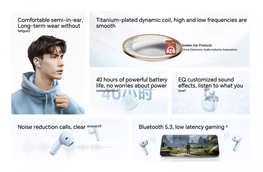 Wie bei den Earbuds X7 hat Honor auf die Silikonaufsätze verzichtet, die bei den meisten seiner Konkurrenten zu finden sind, und sich stattdessen für ein Design mit halben Ohrmuscheln entschieden. Die Earbuds A verfügen über dynamische 10-mm-Treiber und unterstützen wie die teureren Earbuds X7 die Bluetooth 5.3-Konnektivitätstechnologie.