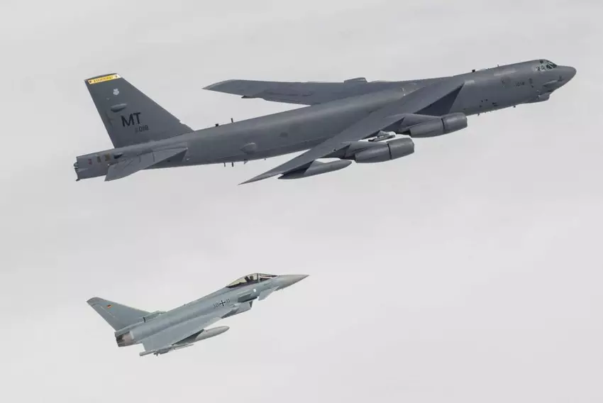 Während des Einsatzes wurden sie von Kampfjets eskortiert. Insbesondere flogen zwei spanische F-18 Hornets, zwei polnische MiG-29 und fünf deutsche Eurofighter Typhoons neben der B-52H Stratofortress.