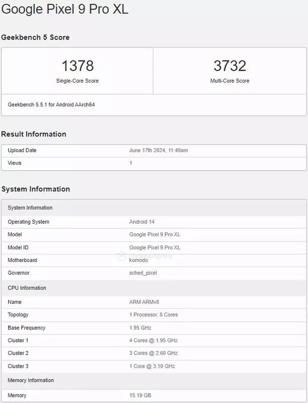 Nach dem Pixel 9 ist nun auch das Smartphone Pixel 9 Pro XL in der Geekbench-Leistungstest-Datenbank aufgetaucht.