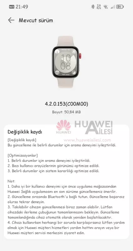 Die Firmware wurde mit der Nummer HarmonyOS 4.2.0.153 veröffentlicht. Das System wiegt 50 MB und hat bereits mit der Auslieferung an Geräte auf dem globalen Markt begonnen. Sie können in der Huawei Health-App nach einem OTA-Update suchen.