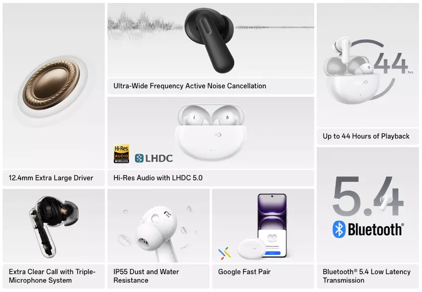 Das neue Produkt verfügt über ein In-Canal-Design und Schutzart IP55. Der Kopfhörer ist in zwei Farben erhältlich: Moonlight White und Midnight Black. Das Modell ist mit 12,4-mm-Treibern und einem Bluetooth 5.4-Modul ausgestattet. Das Gerät ist Hi-Res Audio-zertifiziert und unterstützt den LHDC 5.0 Codec mit 360-Grad-Sound. Das Gerät verfügt über ANC, Google Fast Pair und einen Audio-Gaming-Modus mit niedriger Latenz (bis zu 47 ms). Mit einer einzigen Aufladung hält das Enco Air 4 Pro bis zu 44 Stunden durch (mit Hülle).