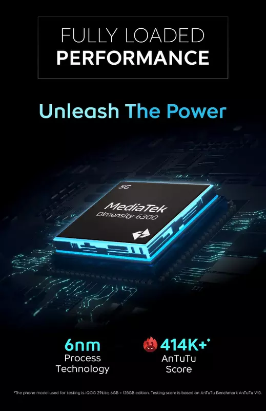 Die Neuheit wird von einem MediaTek Dimensity 6300 Prozessor angetrieben, der mit 6 GB RAM und 128 GB Speicher gepaart ist. Im AnTuTu-Leistungstest erreicht das Smartphone übrigens mehr als 414.000 Punkte.