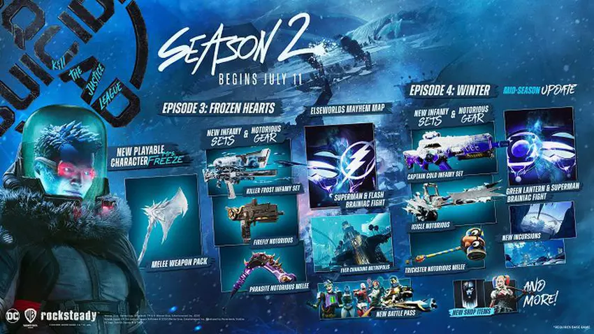 Die zweite Staffel wird die Figur Victoria Fries beinhalten, die eine weibliche Version von Mr. Freeze, einem berühmten Anti-Helden aus dem DC-Universum, ist. Darüber hinaus können die Spieler neue Waffen und zusätzliche kosmetische Gegenstände erwarten.