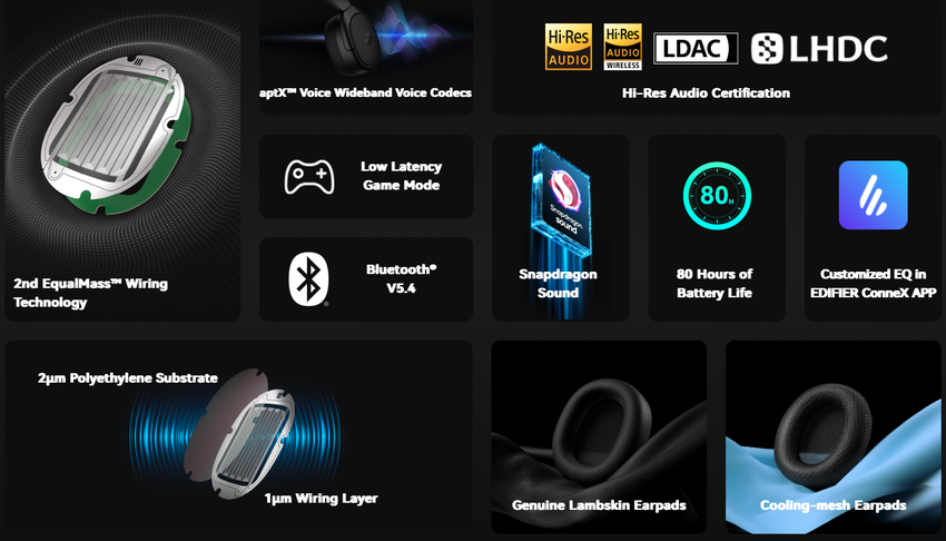 Das Modell heißt Edifier Stax Spirit S5. Die Neuheit hat die Hi-Res-Zertifizierung erhalten und unterstützt die Codecs aptX Lossless, Sony LDAC, LHDC und aptX HD. Der Kopfhörer wird von einem Qualcomm QCC5181 Chip angetrieben, der mit Bluetooth 5.4 gekoppelt ist. Das Gerät verfügt über einen Geräuschunterdrückungsmodus, Google Fast Pair für schnelles Pairing mit Android-Smartphones und die Möglichkeit, sich mit mehreren Geräten gleichzeitig zu verbinden.