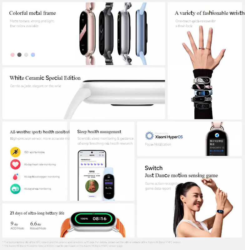 Xiaomi Smart Band 9: AMOLED-Display mit bis zu 1200 nits Helligkeit, Bluetooth 5.4 und bis zu 21 Tage Akkulaufzeit, Preis ab $34
