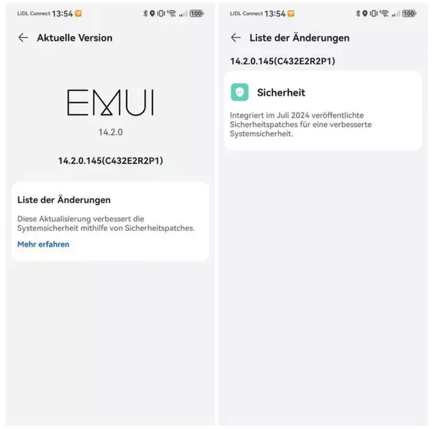 Was die Liste der Änderungen betrifft, so enthält sie den Sicherheitspatch vom Juli. Darüber hinaus hat Huawei das System optimiert und kleinere Fehler in der Software behoben.