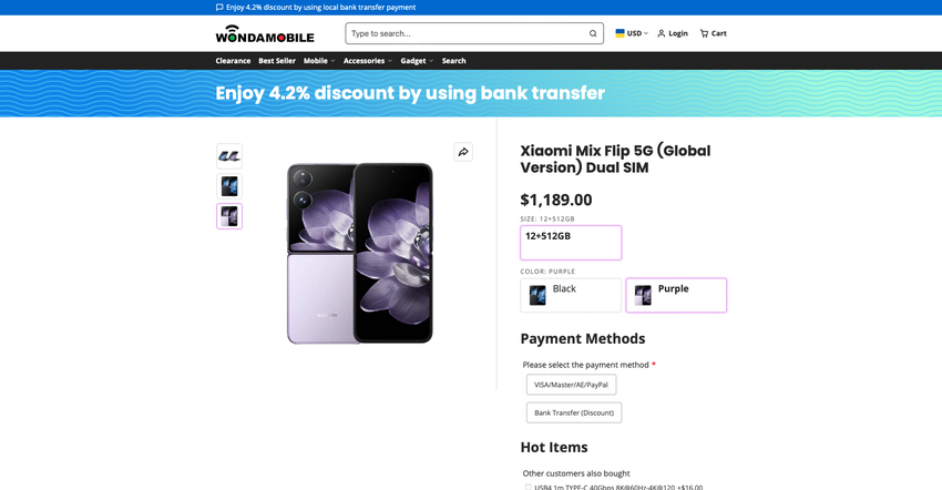 Die globale Version des Xiaomi MIX Flip ist auf der Website des Händlers Wonda Mobile mit einem Preis von $1189 aufgetaucht