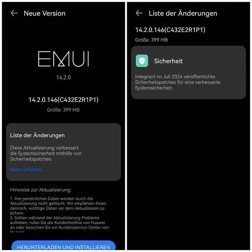 Das System hat bereits begonnen, sich in Wellen auf Smartphones auf dem Weltmarkt zu verbreiten. Die Firmware trägt die Nummer EMUI 14.2.0.146 und wiegt 399 MB.