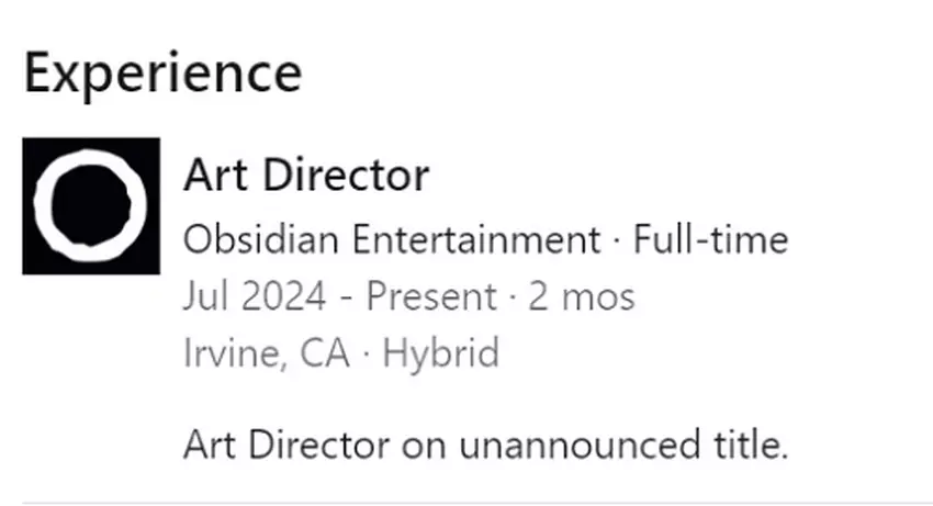 Kürzlich wurde das Obsidian-Team durch den Art Director Daniel Cabuco verstärkt, der auf seiner LinkedIn-Seite erwähnte, dass er an einem unangekündigten Spiel arbeitet.