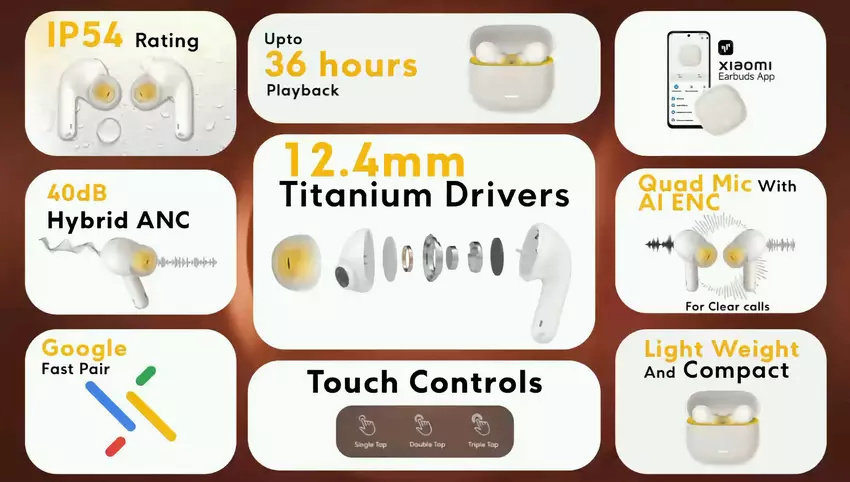 Das Modell verfügt über ein In-Canal-Design, ein Bluetooth 5.3 Modul und 12,4 mm Treiber. Die Kopfhörer verfügen über ein aktives Geräuschunterdrückungssystem (bis zu 40 dB) und Google Fast Pair, das eine schnelle Kopplung mit Android-Smartphones ermöglicht.