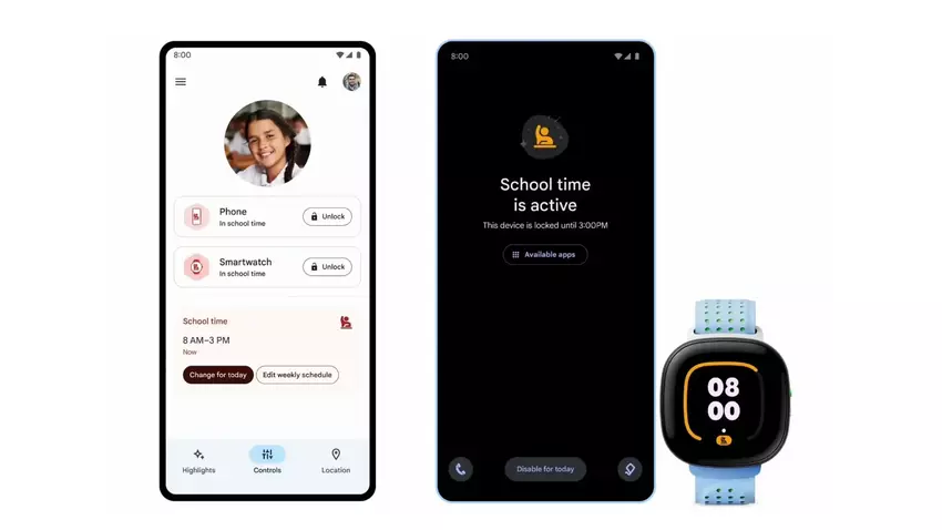 Eltern können über die Family Link-App festlegen, welche Apps ihre Kinder nutzen dürfen und mit wem sie über Anrufe und Nachrichten kommunizieren können. Im Schulzeitmodus zeigen die Geräte bis zu einer bestimmten Zeit einen abgedunkelten Bildschirm mit eingeschränkter Funktionalität und einer Sperrmeldung an.