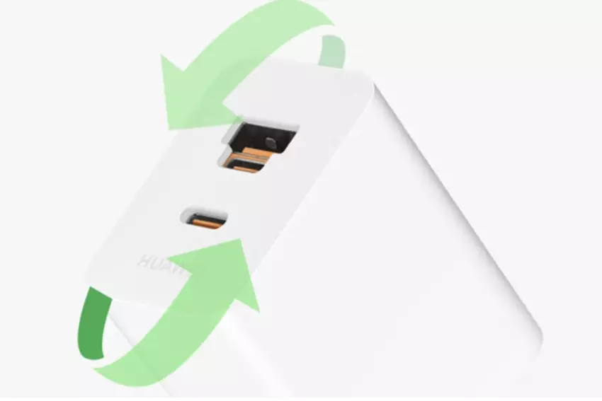 Es ist mit USB-A- und USB-C-Anschlüssen ausgestattet, die Huawei als Fusionsschnittstelle bezeichnet. Das Ladegerät unterstützt PD-, PPS- und QC-Protokolle, was die Kompatibilität mit einer Vielzahl von Geräten gewährleistet. Die Leistung kann 100 W über einen einzelnen Anschluss erreichen, und es sind vier Leistungskombinationen verfügbar, wenn beide Anschlüsse verwendet werden: 88W/18W, 66W/40W, 40W/66W und 18W/88W.