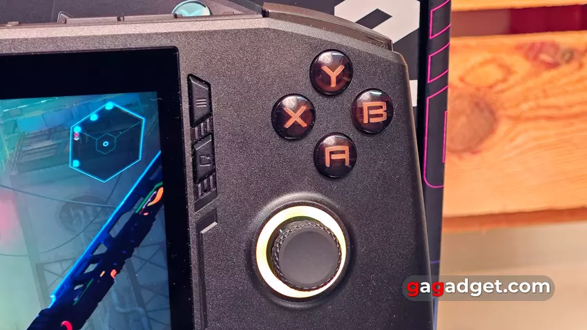 MSI Claw verwendet das gleiche Steuerungsschema wie die Xbox-Gamepads: asymmetrische Anordnung der Sticks, ABXY- und D-Pad-Tasten. Die Knöpfe und Sticks sind gut platziert: Man muss nicht nach der Konsole greifen oder sie anfassen.