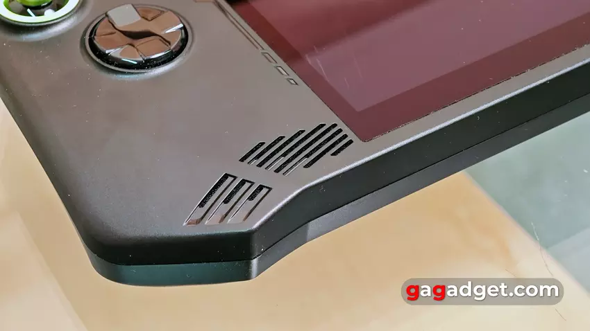 Unten, an den Seiten des Displays, befinden sich die eingebauten Stereolautsprecher. Diese Position ist sehr gelungen: Während des Spiels ist es unmöglich, sie mit den Handflächen zu verdecken.