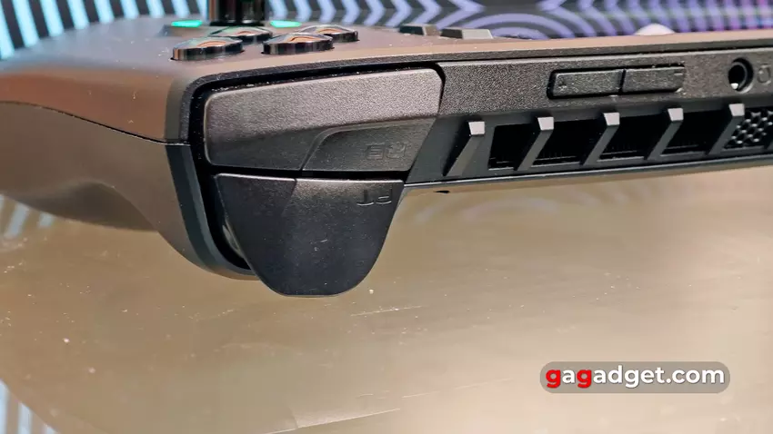 Die Trigger sind sehr komfortabel. Und hier gibt es mit den Bumpern eine kleine Schwierigkeit: man muss die Position der Hand ein wenig verändern. Aber es ist wahrscheinlich, dass dies eine persönliche Eigenheit oder Krümmung ist, und andere Benutzer werden kein solches Problem haben. Die Zusatztasten M1 und M2 auf der Rückseite sind perfekt platziert, die Mittelfinger fallen eindeutig auf sie. Und das ist wirklich wichtig: Abgesehen von Makrobefehlen werden sie für verschiedene Kombinationen verwendet. Zum Beispiel für den schnellen Zugriff auf den Desktop, das Einblenden der Bildschirmtastatur, das Erstellen von Screenshots usw.