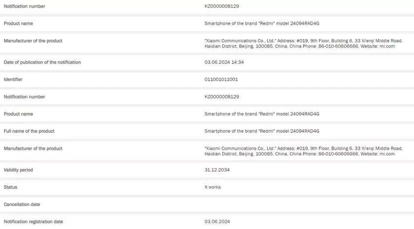 Vor kurzem hat die chinesische 3C-Behörde das neue Telefon mit der Modellnummer 24094RAD4C zugelassen, und das Bureau of Indian Standards (BIS) hat die indische Version mit der Nummer 24094RAD4I bestätigt. Dies deutet auf den bevorstehenden Start des Redmi Note 14 und des Poco X7 Neo hin.