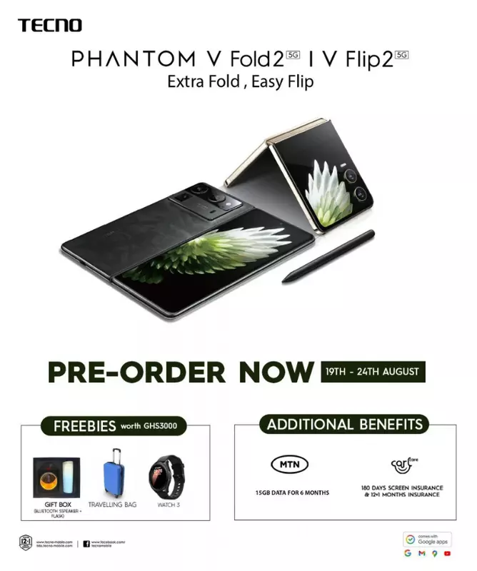Tecno hat im Vorfeld der Markteinführung der faltbaren Smartphones Phantom V Fold 2 und Phantom V Flip 2 Vorbestellungen für die Geräte eröffnet.