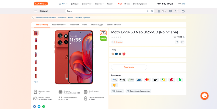 Wir haben bereits mehr als einmal geschrieben, dass Motorola die Veröffentlichung des Moto Edge 50 Neo Smartphones vorbereitet. Jetzt ist die Neuheit auf der Website des ukrainischen Händlers Citrus aufgetaucht.