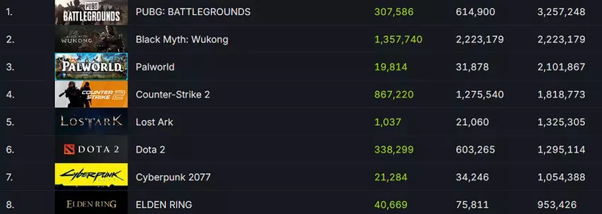 Am Tag der Veröffentlichung wurde Black Myth: WuKong von mehr als 2,2 Millionen Menschen online gespielt - und das nur auf Steam! Das Spiel hat damit so beliebte Spiele wie Counter-Strike 2, Cyberpunk 2077, Elden Ring, Hogwarts Legacy, Baldur's Gate 3 und Palworld überholt und liegt mit seinen 3,2 Millionen Spielern an zweiter Stelle nach PUBG. Aber diese Zahl scheint nicht unerreichbar zu sein und wahrscheinlich wird Monkey King in den nächsten Tagen auch der König von Steam werden.