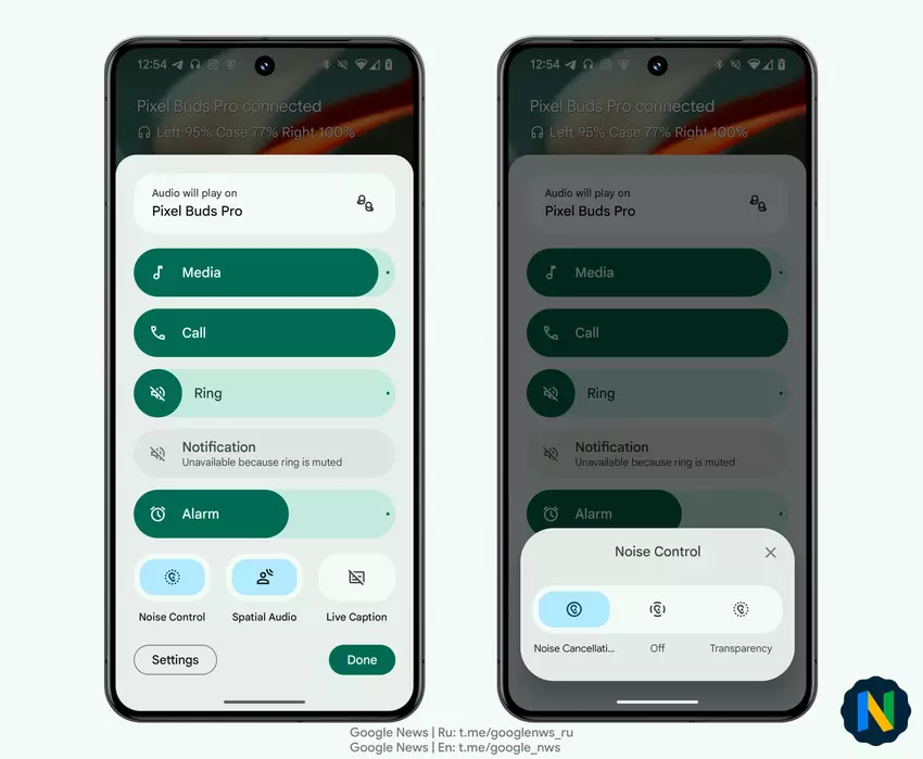 Google wird in der endgültigen Version von Android 15 die Steuerung von ANC und Spatial Audio wieder in das neue Lautstärkeregelungsfeld integrieren