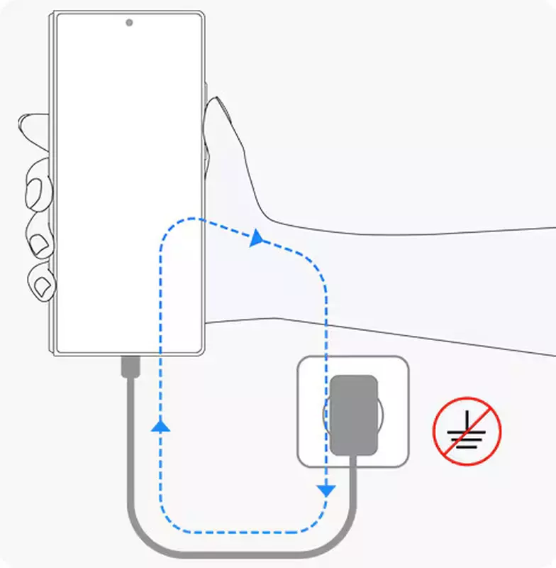 Laut Samsung ist die Hauptursache für das Abblättern der Farbe die Verwendung von inoffiziellen Ladegeräten und Zubehör. Es hat sich herausgestellt, dass deren Einfluss die elektrische Erdung des Geräts stören kann, was zu Leckstrom und Schäden an der Beschichtung führt.