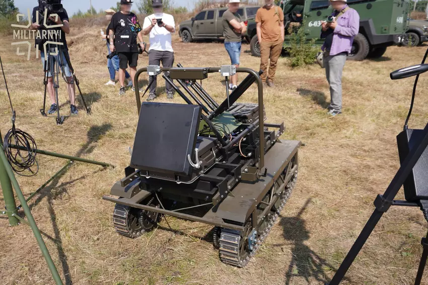 "Die unbemannte, kettengetriebene Plattform, die ein universelles elektronisches Kriegsführungssystem beherbergt, ist in der Lage, sich 3 bis 4 Kilometer über die Kontaktlinie hinaus zu bewegen und sowohl gegen Späh- und Aufklärungsdrohnen als auch gegen FPV-Kamikaze-Drohnen vorzugehen", erklärte Yaroslav Filimonov, CEO des Unternehmens.