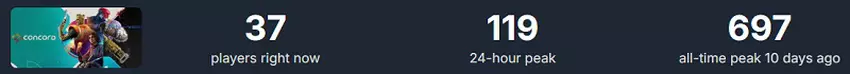 Laut GameDiscover sollen die Gesamtverkäufe von Concord etwa 10.000 auf Steam und etwa 15.000 auf PlayStation betragen. Die Online-Spitze auf Steam liegt bei 697 Personen, und zum Zeitpunkt der Erstellung dieses Artikels befinden sich 37 Personen im Spiel.
