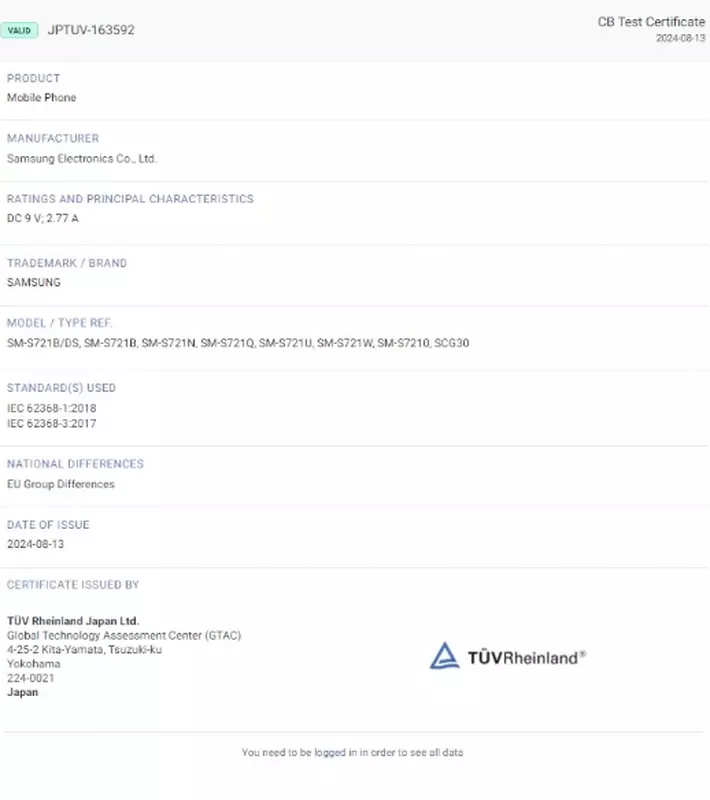 Die Zertifizierung bestätigt auch die Verfügbarkeit von sieben Galaxy S24 FE-Modellen: SM-S721B/DS, SM-S721B, SM-S721N, SM-S721Q, SM-S721U, SM-S721W und SM-S7210. Es wird davon ausgegangen, dass sich diese Modelle je nach Markt unterscheiden werden, wobei das SM-S721B die globale Version und das SM-S721U die US-Version ist.