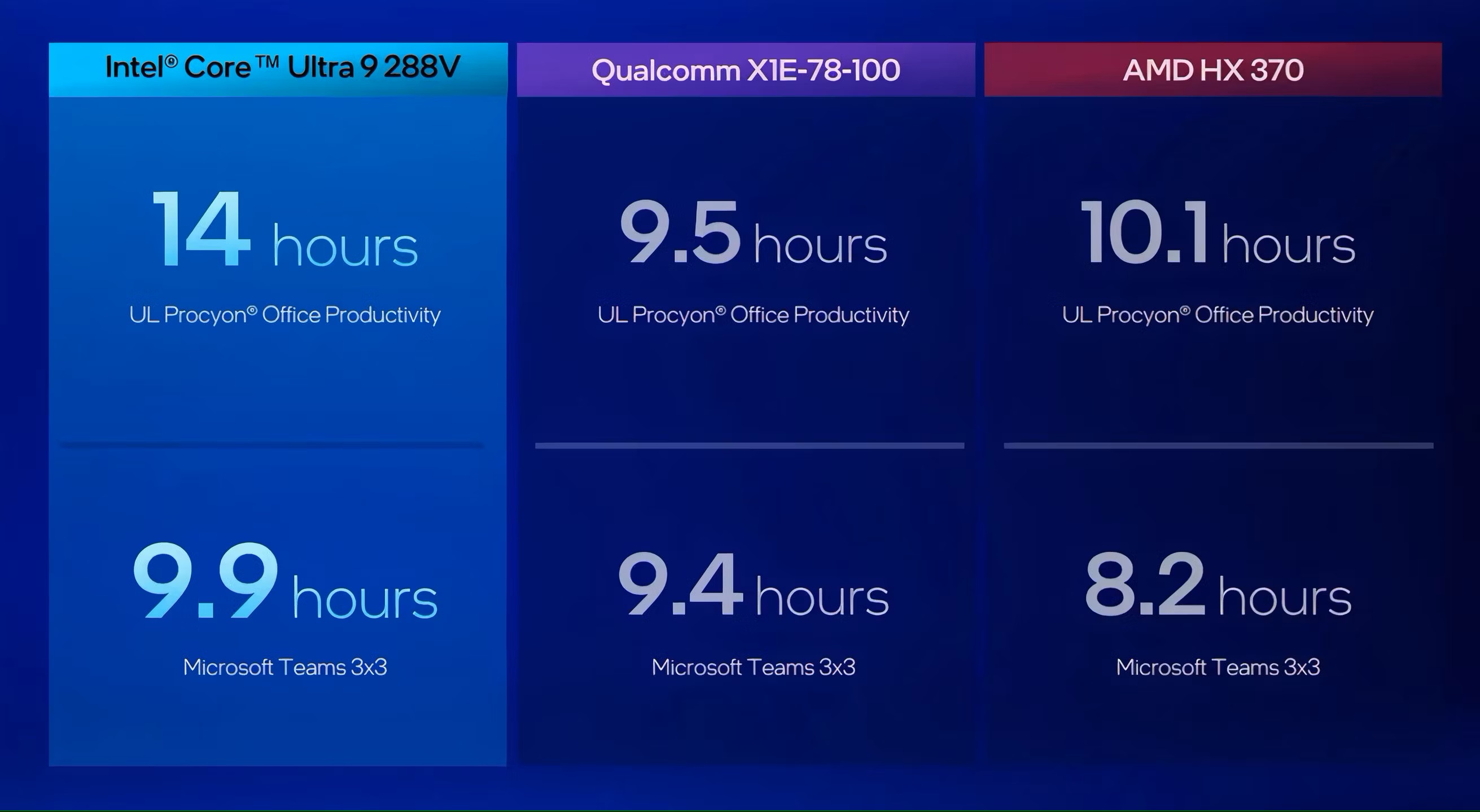 Intel behauptet, dass die neuen Prozessoren den "schnellsten CPU-Kern" und die "beste Leistung für KI" bieten. Im Vergleich zu Konkurrenten wie Qualcomm und AMD wird der Core Ultra 200V bis zu 50 Prozent weniger Stromverbrauch und bis zu 120 TOPS auf CPU und GPU bieten. Es wird erwartet, dass Core Ultra 200V-basierte Geräte bis zu 20 Stunden ohne Aufladen laufen können.