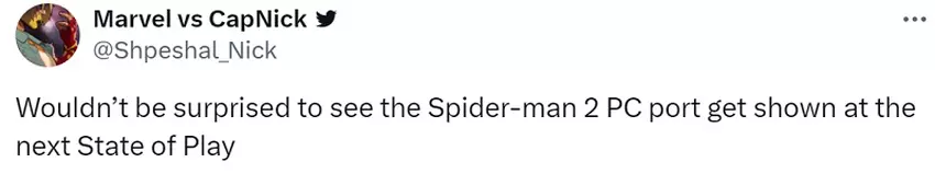 Das umgestaltete Management von PlayStation hat wiederholt erklärt, dass es die meisten seiner Spiele auf dem PC veröffentlichen wird, und zwar wesentlich schneller als in der Vergangenheit. Daher sieht die Shpeshal Nick-Version recht realistisch aus. Wenn wir den Veröffentlichungszeitplan von Sony-Spielen vergleichen, können wir davon ausgehen, dass, wenn Marvel's Spider-Man 2 im September angekündigt wird, das Spiel Anfang 2025 auf dem PC erscheinen wird.