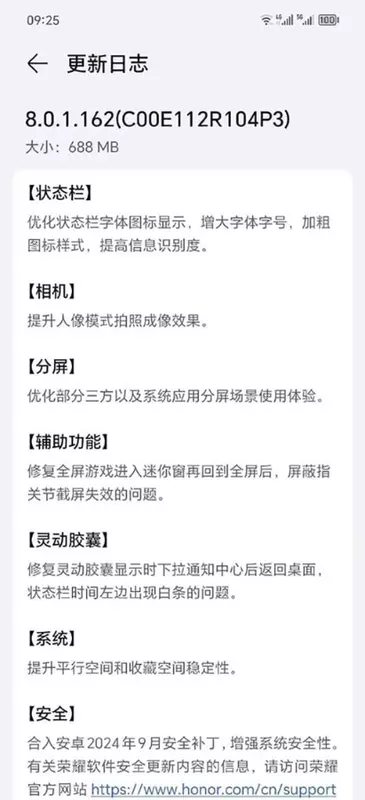 Was die Liste der Änderungen betrifft, so enthält sie eine Menge Änderungen. So hat Honor zum Beispiel an der Statusleiste des Geräts gearbeitet, ebenso wie an der Kamera des Smartphones. Darüber hinaus haben die Entwickler Fehler im System behoben, den Multitasking-Modus optimiert und einen neuen Sicherheitspatch hinzugefügt. Dieser schließt verschiedene Software-Schwachstellen.