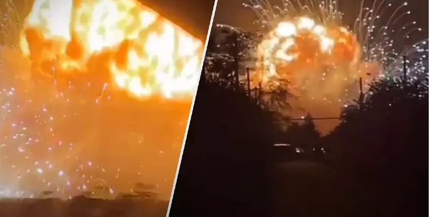 In den russischen Medien kursieren Videos von der spektakulären Explosion, die heute Abend im Hauptmunitionslager der Artillerie im Bezirk Tichorezki in der Region Krasnodar stattfand.