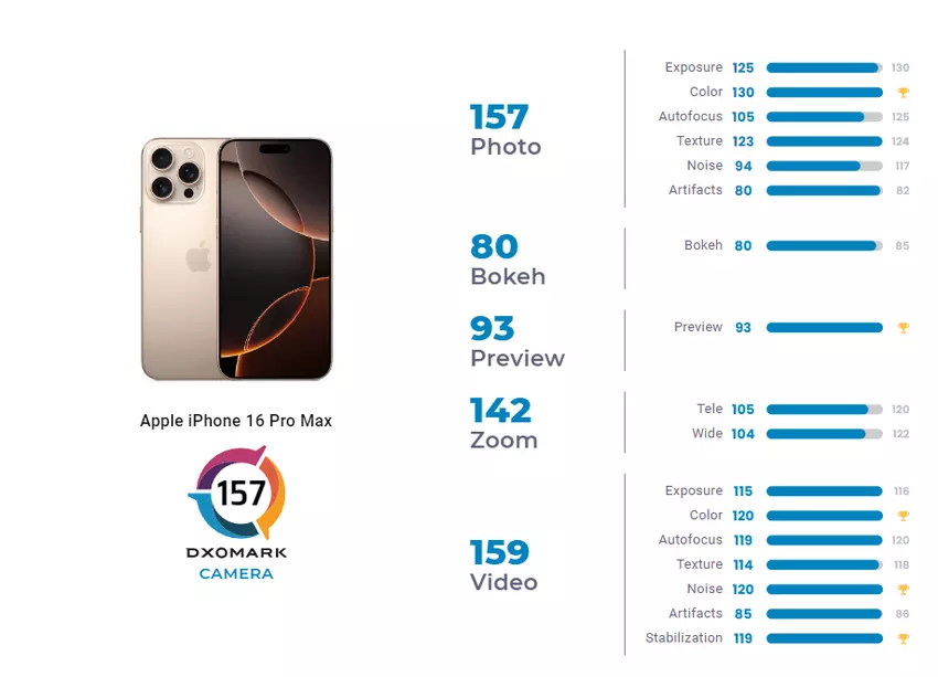iPhone 16 Pro Max belegt den vierten Platz im DxOMark-Test: hochwertige Videos, aber begrenzter Zoom