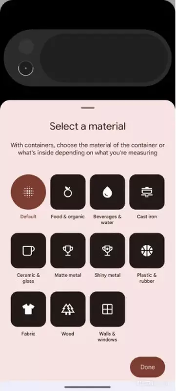 Google entwickelt die Fähigkeit, Materialien automatisch zu erkennen. Es gibt Hinweise im Anwendungscode, dass das Telefon in der Lage sein wird, das Objekt, auf das es gerichtet ist, zu bestimmen.