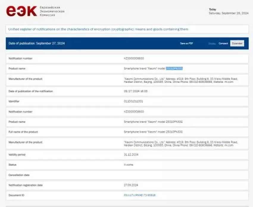 Das Xiaomi 15 Ultra hat vor kurzem ein EEC-Zertifikat erhalten, das es erlaubt, das Smartphone auf globalen Märkten zu verkaufen, einschließlich Europa, Indien und Eurasien.