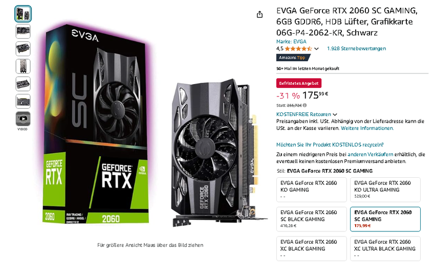 Schnappen Sie sich die EVGA GeForce RTX 2060 SC GAMING zu einem unwiderstehlichen Preis auf Amazon.de