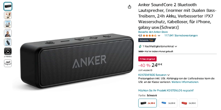 Greifen Sie jetzt zu: Anker SoundCore 2 zum Spitzenpreis auf Amazon.de