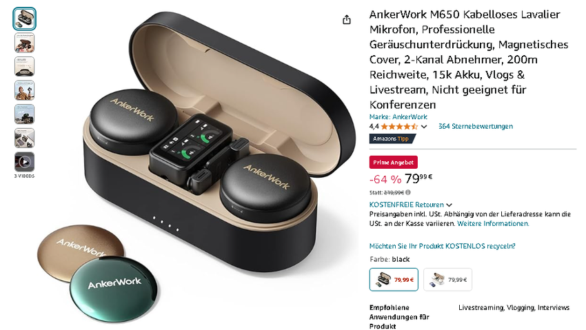 In der Welt der Content-Erstellung gibt es Momente, die man als echte Sternstunden bezeichnen kann. Heute präsentieren wir Ihnen einen solchen Moment: Das AnkerWork M650 Kabelloses Lavaliermikrofon ist jetzt zu einem Preis erhältlich, der selbst erfahrene Technik-Enthusiasten staunen lässt. Dieses hochwertige Audio-Tool verspricht, Ihre Aufnahmen auf ein neues Level zu heben – und das zu einem Preis, der Ihre kreative Ader jubeln lässt.