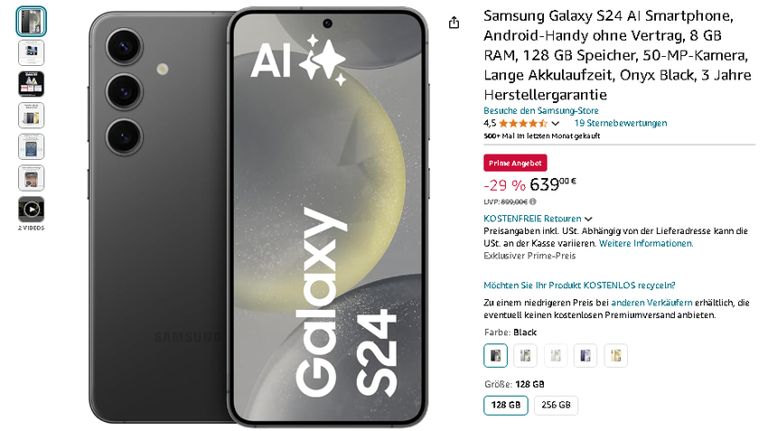 Sichern Sie sich das Galaxy S24 zu einem unwiderstehlichen Preis auf Amazon.de
