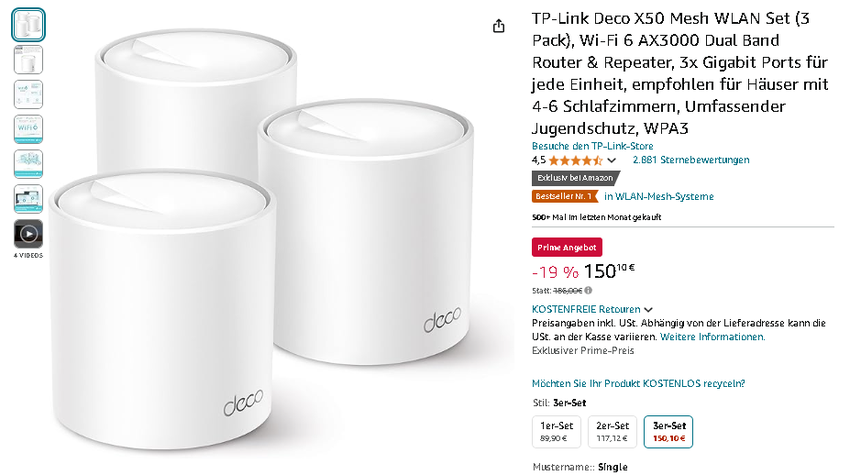 Mit seiner beeindruckenden Leistung, der einfachen Einrichtung und dem attraktiven Preis ist das TP-Link Deco X50 Mesh WLAN Set die perfekte Lösung für ein modernes, leistungsstarkes Heimnetzwerk. Greifen Sie zu, solange das Angebot gilt, und erleben Sie WLAN-Freiheit in jedem Winkel Ihres Zuhauses!