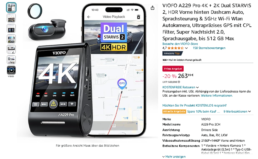 Mit ihrer überragenden Bildqualität, den fortschrittlichen Funktionen und dem attraktiven Preisnachlass ist die VIOFO A229 Pro Dual Dashcam eine kluge Investition in Ihre Fahrzeugsicherheit. Nutzen Sie diese Gelegenheit, um Ihr Fahrerlebnis sicherer und sorgenfreier zu gestalten – greifen Sie zu, solange das Angebot gilt!
