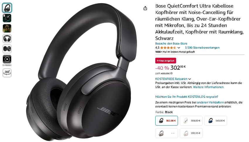 Greifen Sie jetzt zu: Bose QuietComfort Ultra zu einem unschlagbaren Preis auf Amazon.de