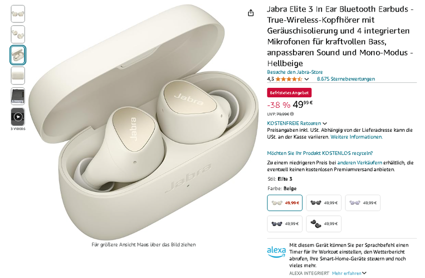 Sichern Sie sich die Jabra Elite 3 zu einem unschlagbaren Preis auf Amazon.de