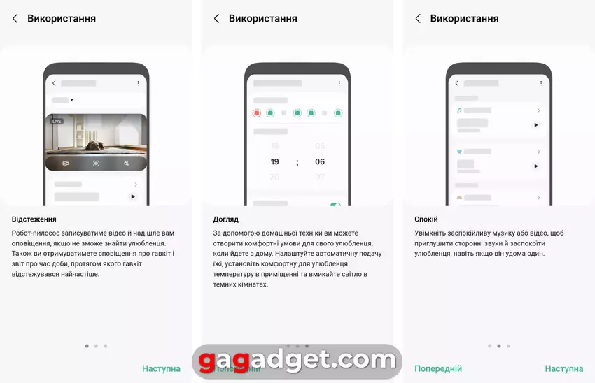Die Kamera des Roboters kann sowohl im automatischen Modus (er läuft in der Wohnung herum und sucht nach einer Katze oder einem Hund) als auch im manuellen Modus gesteuert werden (stellen Sie sich vor, Sie haben eine bewegliche IP-Kamera! Aber nur mit einem Blickwinkel vom Boden aus). Sie können auch 1 bis 5 Zonen auf der Karte der Wohnung hinzufügen, in denen es besser ist, nach einem Haustier zu suchen. Und natürlich können Sie all dies in einen Staubsauger-Zeitplan einbauen. Das heißt, er kann Sie nicht nur zum Putzen anfahren, sondern auch zum Aufspüren von Katzen.