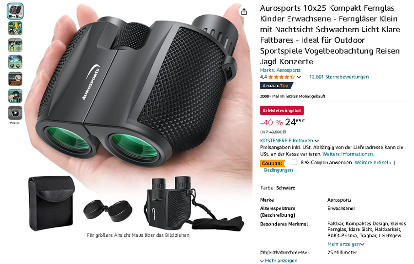 Greifen Sie jetzt zu: Aurosports Kompakt Fernglas zum Schnäppchenpreis auf Amazon.de