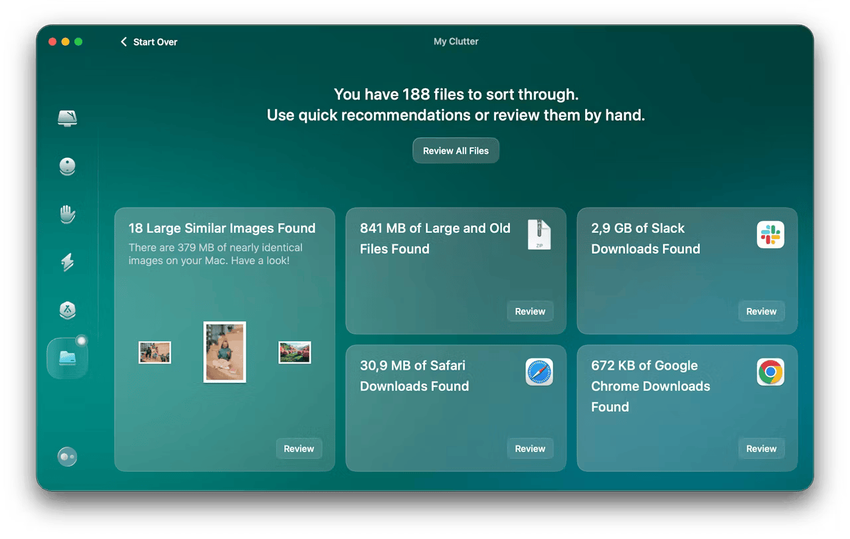 My Clutter ist ein Modul, das den Aufräumprozess erleichtert, indem es Ihnen hilft, große und veraltete Dateien, Duplikate, ähnliche Bilder und unnötige Downloads zu finden und zu löschen. CleanMyMac hilft Ihnen, Ihren Mac aufzuräumen, indem es Objekte erkennt, die möglicherweise Speicherplatz belegen, und Ihnen die Möglichkeit gibt, zu wählen, was Sie behalten und was Sie löschen möchten.